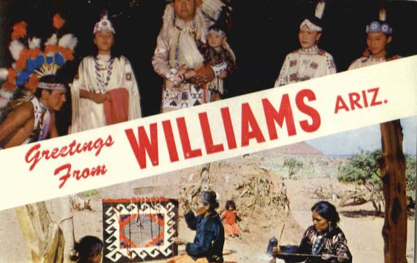 Front: Greetings WILLIAMS ARIZ. Back: Color Reproduction by Pikes Peak Lithographing Co. Colorado Springs, Colo. Rembrant here