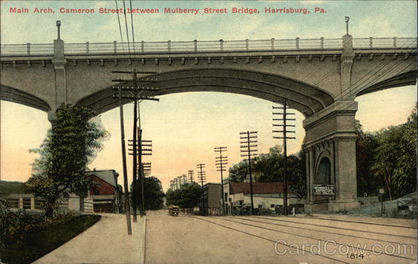 Front: Main Arch, Cameron Street between Mulberry Street Bridge, Harrisburg, Pa. *** ECORACE & CO. CONTRACTORS CY 1814 Back: THIS SPACE MAY BE USED FOR MESSAGE FOREIGN- THIS SPACE FOR THE ADDRESS