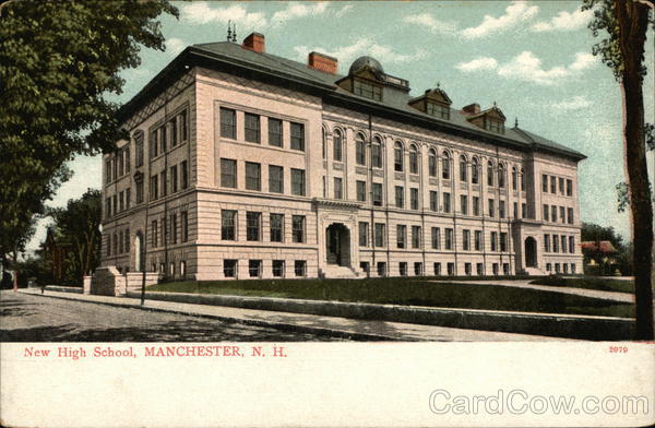 Front: 11 New High School, MANCHESTER, N. H. 2079 Back: Made in Germany. A. C. Bosselman & Co., New York. One Cent for United States, and Island Possessions, Cuba, Canada and For Foreign.