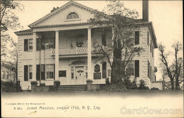 Front: 0-1 Copyright 1905 by the Rotograph Co. A 40 a Jumel Mansion, erected 1758, N. D., City. Back: The Rotograph Co., N. Y., City. (Germany.) 30 Two cents