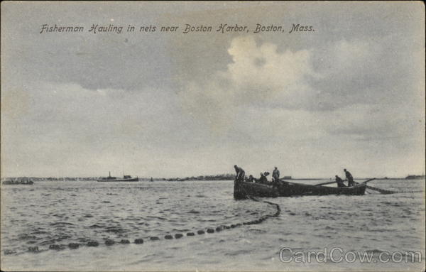 Front: Fisherman Hauling in nets near Boston Harbor, Boston, Mass. Back: The Metropolitan News Co., Boston, Mass. Manufacturers of Souvenir Postal Cards. 1130. → Post Card * 56111