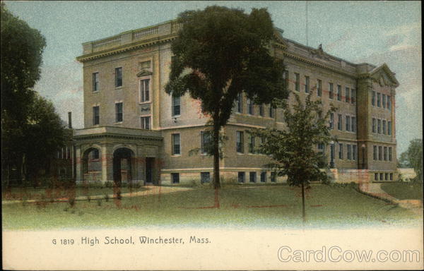 Front: FR G 1819 High School, Winchester, Mass. 111 310 11 Back: @ 1819 The Rotograph Co., N. Y., City. (Germany.) شروع 1819