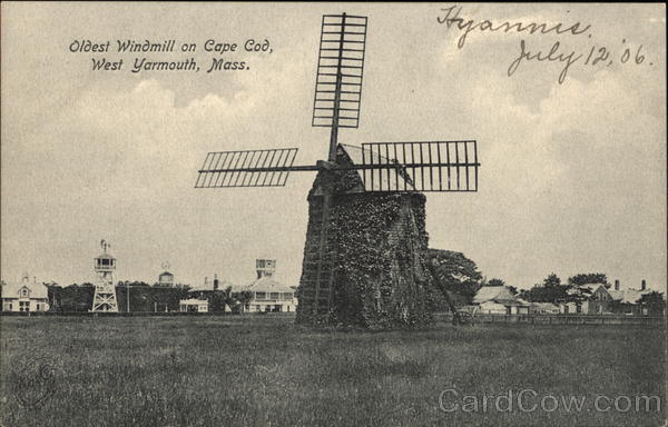 Front: Oldest Windmill on Cape Cod, West Yarmouth, Mass. II Hyannic. July 12.06. Back: 1970. The Metropolitan News Co., Boston, Mass. and Germany. Me RADEMARK 5-