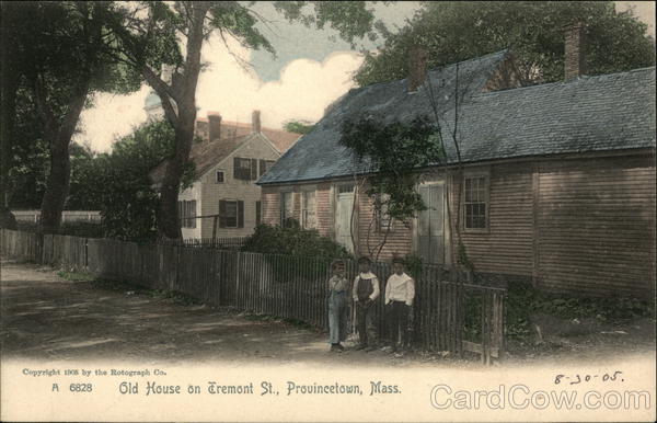 Front: Copyright 1905 by the Rotograph Co. A 6828 Old House on Tremont St., Provincetown, Mass. 8-30-05. Back: The Rotograph Co., N. Y. City. (Germany.) گی