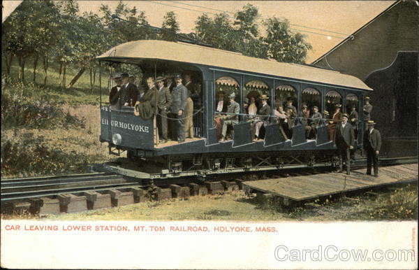 Front: Ell URHOLYOKE CAR LEAVING LOWER STATION, MT. TOM RAILROAD, HOLYOKE, MASS. Printed in Germany. Back: 300 UNITE WEHEL. 1902 ATES OF 1706 FRANKLIN 1790 ONE CENT