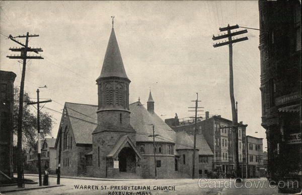Front: WARREN ST. PRESBYTERIAN CHURCH ROXBURY, MASS. Wi DI OOL S Back: No. 1705. Pub. by Boston Post-Card Co. HAND COLORED Place