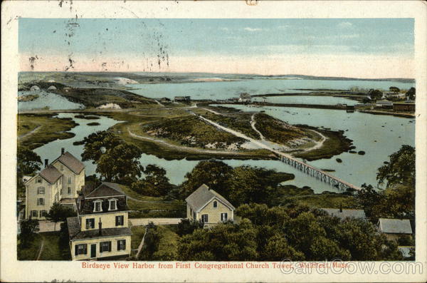 Birdseye View Harbor from First Congregational Church Tower, Wellfleet, Mass.