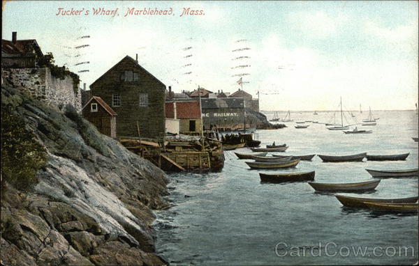 Front: Jucker's Wharf, Marblehead, Mass. NE RAILWAY. Back: No. 7949. Me TRADEMARK FEB13 5-PM 0 1901 BOS Mrs. Nath Taylor NERIEN 1902 UNITED ATES OF 1706 FRANKLIN 1790 Con Marshfied Tass.