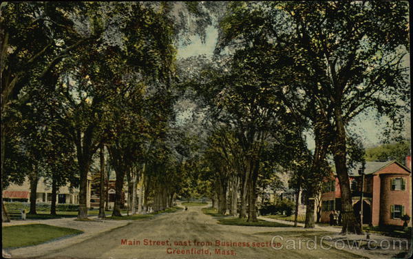 Front: Main Street, east from Business section Greenfield, Mass. Back: 1c to United States Canada or Mexico 2c to all other Countries. 2-
