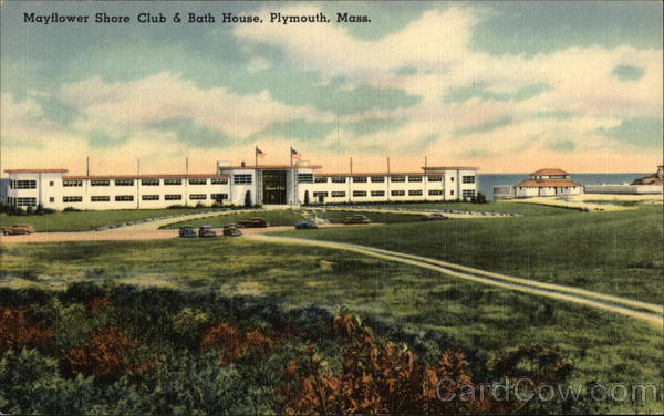 Front: Mayflower Shore Club & Bath House, Plymouth, Mass. Back: Z. "TICHNOR QUALITY VIEWS” REG. U. S. PAT. OFF. MADE ONLY BY TICHNOR BROS., INC., BOSTON, MASS. 78372 PUB. BY SMITH'S INC., PLYMOUTH, MASS.