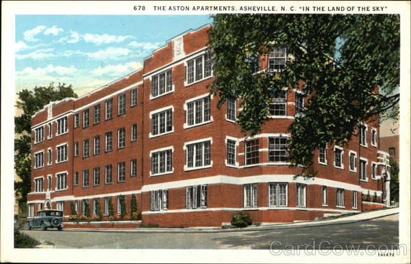 Front: 678 THE ASTON APARTMENTS, ASHEVILLE, N. C. "IN THE LAND OF THE SKY" 1A1472 Back: 150 C. T. AMERICAN ART COLORED
