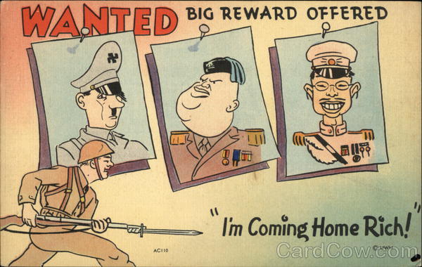 Front: WANTED BIG REWARD OFFERED to I'm Coming Home Rich! ACII0 © MWM Back: MWM Color-Litho "Bursheen" Finished. Made Only By MWM - Aurora. Mu. MWMS