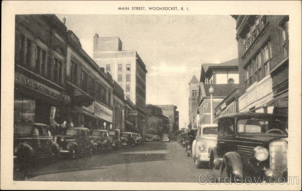 Front: MAIN STREET, WOONSOCKET, R. I. RESGE CO TW SNVO 437 Back: BY BERGER BROTHERS, PROVIDENCE, R. 1. PUB