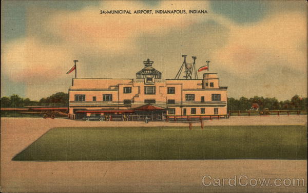 Front: 24:-MUNICIPAL AIRPORT, INDIANAPOLIS, INDIANA Back: IN CRAFT GREETING CARD CO.. INDIANAPOLIS, IND., PUBLISHERS THIS SPACE FOR WRITING MESSAGES