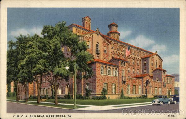 Front: Y. M. C. A. BUILDING, HARRISBURG, PA. 3A-H921 Back: "C. T. ART-COLORTONE, 66 MADE ONLY BY CURT TEICH & Co., INC., CHICAGO, U.S.A. J. B. HOFFMAN, HARRISBURG, PA.