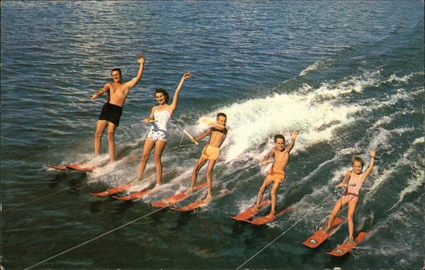 P35619 A WATER-SKIING FAMILY by COLOURPICTURE PUBLISHERS, INC., Boston 15, Mass., U.S.A. Color by Free Lance Photographers Guild, Inc. Made in HERE