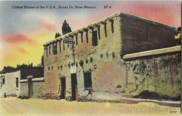 Front: SF-4 Oldest House in the U.S.A., Santa Fe, New Mexico OLDEST HOSE IN O.S.A 16757 Back: A "COLOURPICTURE PUBLICATION SOLD BY OLD TRAIL NEWS AGENCY, SANTA FE NM BOSTON 15MASS, USA in