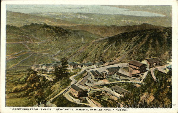 Front: WIT "GREETINGS FROM JAMAICA," NEWCASTLE, JAMAICA, 19 MILES FROM KINGSTON. T Back: MADE IN USA PUBLISHED BY A. DUPERLY & SON, KINGSTON, JAMAICA. R-86953 Jamaica (Jamaique) ½ d 1d