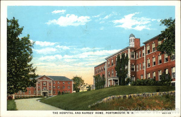 Front: 17 10 THE HOSPITAL AND NURSES' HOME, PORTSMOUTH, N. H. BLE 4825-29 Back: C. T. AMERICAN ART COLORED TE HERE