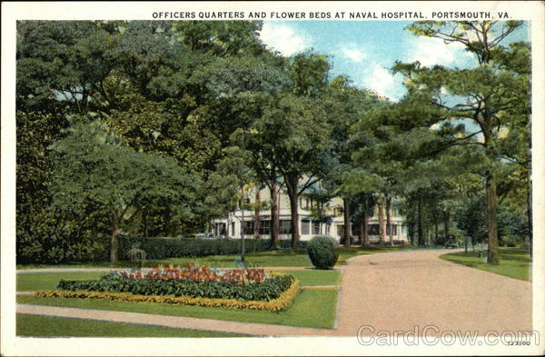 OFFICERS QUARTERS AND FLOWER BEDS AT NAVAL HOSPITAL, PORTSMOUTH, VA.