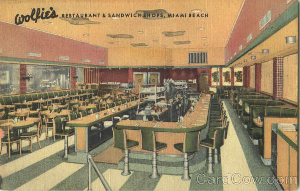 Front: wolfie's RESTAURANT & SANDWICH SHOPS, MIAMI BEACH Back: wolfica RESTAURANT & SANDWICH SHOPS LINCOLN ROAD AT COLLINS COLLINS AT 2187 MIAMI BEACH Famous for Good Food the World Over 1C-H1566