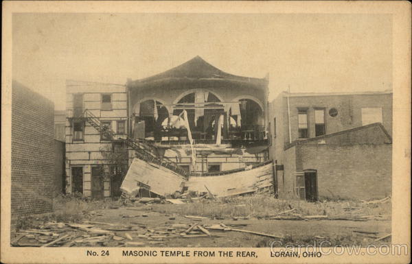 Front: Jol No. 24 MASONIC TEMPLE FROM THE REAR, LORAIN, OHIO Back: Published by H. H. HAMM, Toledo, O. H.H Hamm Toledo, Ohio FOREIGN/ TWO CENTS