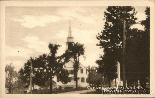 Front: CONGREGATIONAL CHURCH, PAXTON, MASS. Back: THE NOMIS MEG. Co., INC., 33 UNION SQUARE, NEW YORK CITY POST CARD