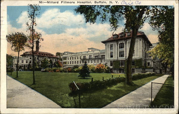 Front: 50: Millard Fillmore Hospital, Buffalo, N. Y. BAGG Erie Co. 20311 Back: gover El FOR WRITING JUL 23. white 30 AM HIS SIDE IS FOR THE ADDRESS falen to many soon ing 79: ac.cam Canal IS THARAY TES 1932 DENTS