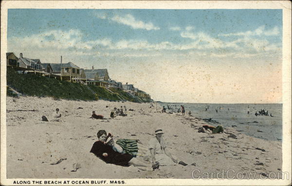 Front: ALONG THE BEACH AT OCEAN BLUFF, MASS. 6) Back: Pub. by Whitman & Wright. Ocean Bluff, Mass. 3⁰ THE SPACE MAY BE USED FOR MESSAGE. PORCION, TWO CENTS