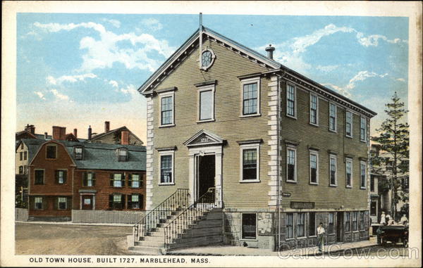 Front: 1727. OLD TOWN HOUSE, BUILT 1727, MARBLEHEAD, MASS. OLICE STATION 35 Back: C.T. AMERICAN A-53253 360 ܚܐ DOSTA THIS SPACE FOR ADDRESS ONLY.