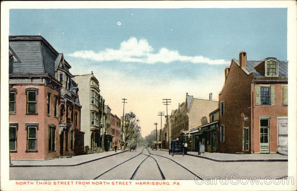 Front: 手。 NORTH THIRD STREET FROM NORTH STREET HARRISBURG, PA. Back: Pub. by Union News Co., New York City. ADE MARK REGISTERED TWO CENTS