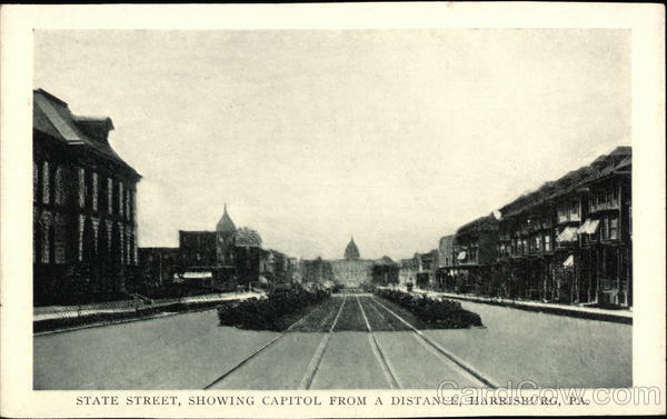 Front: STATE STREET, SHOWING CAPITOL FROM A DISTANCE, HARRISBURG, PA. Back: POST OARD THIS SPACE IS FOR ADDRESS ONLY