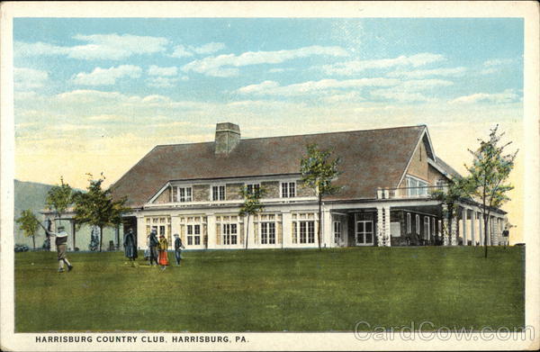 Front: A A HARRISBURG COUNTRY CLUB, HARRISBURG, PA. Back: 7114 FI C. T. AMERICAN 052 95180 AND ISLAND POSSESSIONS, CUBA, CANADA AND MEXICO FOR FOREIGN