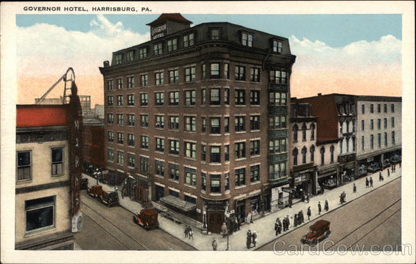 Front: GOVERNOR HOTEL, HARRISBURG, PA. GOVERNOR BRODEONILIBO 1:0 101 DD 111 11111 !!!!! M KTH Back: CO., HARRISBURG, PA. PUB. BY THE HARRISBURG SPECIALTY MFD GRIDGE HE EICHNOR DUALIEX, VIEWS MA 115701 THIS SPACE FOR ADDRESS ONLY