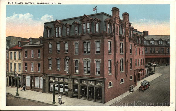 Front: THE PLAZA HOTEL, HARRISBURG, PA. ROYAL OTEL MARTIN 10 T ELE AJANK 1131 111- |||| Back: PUB. BY THE HARRISBURG SPECIALTY CO., HARRISBURG, PA. MFD RMG RIDGE EICHNOR MASS TUALITY 115698 Mung) DOST THIS SPACE FOR ADDRESS ONLY