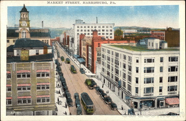 Front: LLCAPLAN BLDG 29181 ENITUSE MARKET STREET, HARRISBURG, PA. FASTHESIA ** ** CAS** AT EEE 11. UNITED CIGA PS Back: Pub. by Corl & Co., Harrisburg, Pa. HADEMUSA CO STAMP HERE