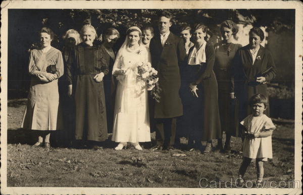 fin Bild von Luis seiner Hochzeit. das Brautzaar Luib und Centa Fanny, Anne, Frau Rupg. neben dem Luik- Centa ihre Schwester, Elieb. und noch Verwandte. Wir haben mehrere Aufnahmen gematht; auf dieser ist eben die Ana.