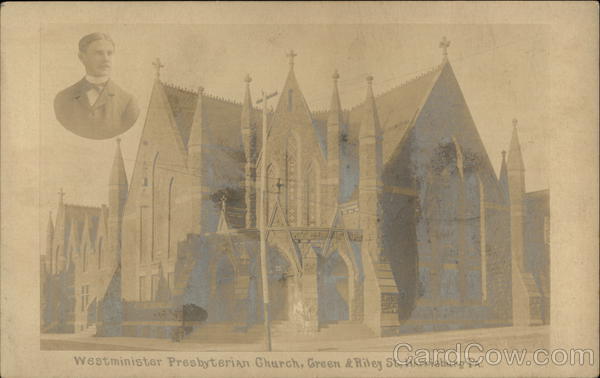 Front: Westminister Presbyterian Church, Green & Riley St, Harrisburg PA. Back: 9112 15, et AANO 4 4 ANO 4 ΛΑΖΟ Δ Α PLACE ΛΑΖΟ Δ NAME AND ADDRESS HERE