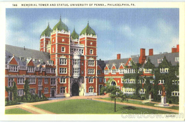 MEMORIAL TOWER AND STATUE, UNIVERSITY OF PENNA., PHILADELPHIA, PA.