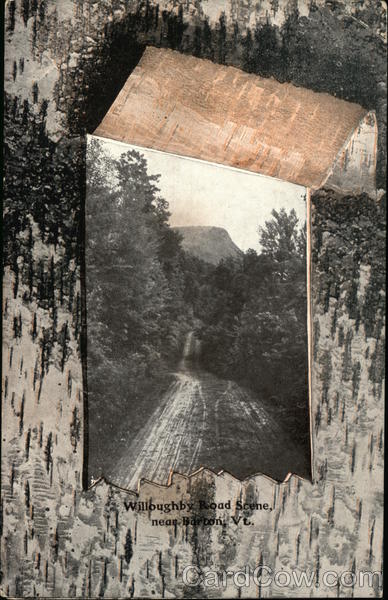 Front: Willoughby Road Scene, near Barton: Vt. BARE Back: Message allowed in this space for one cent postage. This space is exclusively for the address STAMP