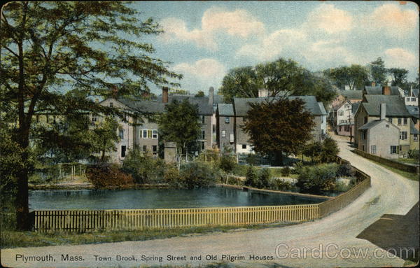 Plymouth, Mass. Town Brook, Spring Street and Old Pilgrim Houses.