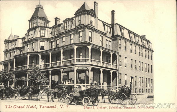 Front: 18.0 HADZOR The Grand Hotel, Yarmouth, N. S. Edgar J. Vickery. Publisher, Yarmouth, Nova Scotia Back: For Postage, in Canada only, This space may be used for correspondence. I cent for and U.S. for abroad Maggie Chernell Printed in Belgium.