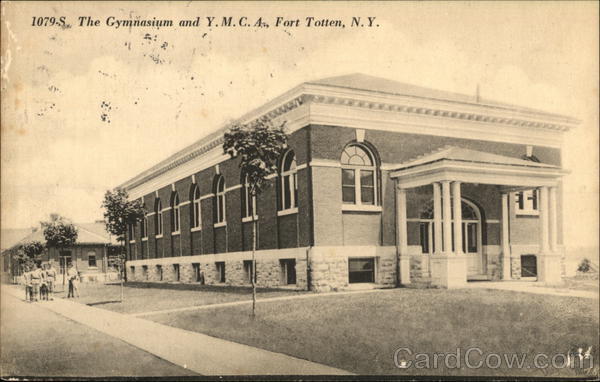 Front: 1079-S The Gymnasium and Y. M. C. A, Fort Totten, N. Y. TH 1111 11 18 Back: F7418 LJ SIOR N. View Harold of Think fort what do of it JUOLE This another 12 M 191 7^^^^^ wins Mildred Ainsworth 53 white hall Rood Amerbury CENT