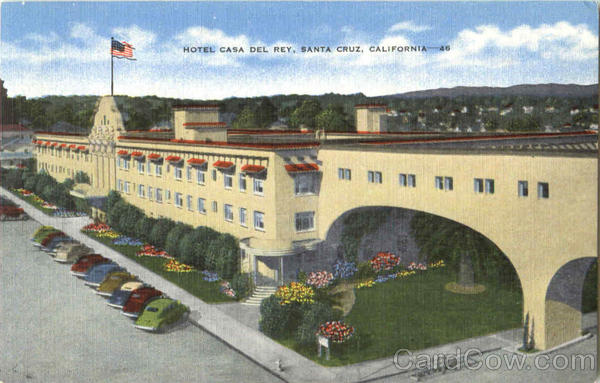 Front: HOTEL CASA DEL REY, SANTA CRUZ, CALIFORNIA -46 LL LL Back: 7906 Hotel Casa del Rey at the Beach, Santa Cruz, California; one of the well-known resort hotels of the Pacific Coast. Со -Distributed by F. R. Fulmer, Santa Cruz, Calle