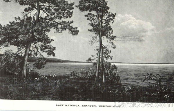 Front: LAKE METONGA, CRANDON, WISCONSIN 6 Back: со 12349N -KROPPSMILW-MONOTONE POST CARD. A. FAGAN Co., MADISON-