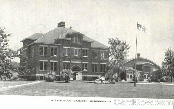 Front: HIGH SCHOOL, CRANDON, WISCONSIN Back: Со 12366N KROPP MILW.--MONOTONE POST CARDS. A. FAGAN CO., MADISON-