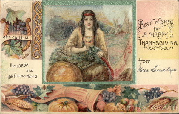 Front: The earth is bee the LORD'S the fulness thereof BEST WISHES A HAPPY & THANKSGIVING, CP560 More Loudlam Meis Back: So ON THIS SIDE. PRINTED IN GERMANY