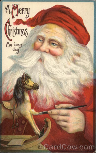 Front: A Merry Christmas My busy day O Back: Series 737 c Helen and Hazel Manter. Best wishes for a Mrs. 6. M. Knapp. Merry Christmas триму and a happy Anaheim, Californian new Year. 17.12.+ Box 84 DOMESTIC 1¢ FOREIGN 2¢
