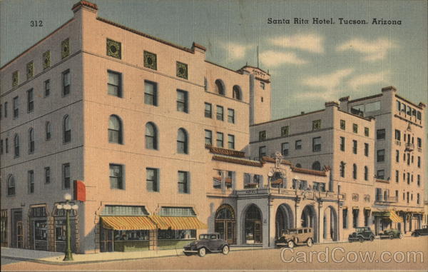 Front: Santa Rita Hotel, Tucson. Arizona 312 111 EEE 111 Back: MADE IN U, S. A *TICHNOR QUALITY VIEWS" REG. U.S. PAT, OFF. MADE ONLY BY TICHNOR BROS.. INC., BOSTON, MASS. 65324 PUB. BY TUCSON NEWS AGENCY