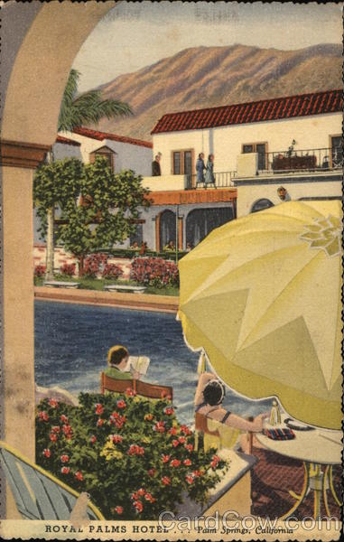Front: ROYAL PALMS HOTEL. . . Palm Springs, California Back: 8A-H2547 THE ROYAL PALMS HOTEL Palm Springs, California Located in the heart of the Village "Truly nearest things worthwhile"